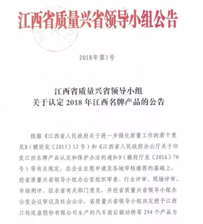 2018年12月21日,由江西省興省領導小組辦公室組織評選的“江西名牌產(chǎn)品”名單隆重揭晚,公司申報的“含氟樹脂F(xiàn)EPPFAPVDFETFE聚醚鮮酮PEEK"等被認定為“江西名牌產(chǎn)品”。